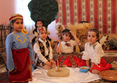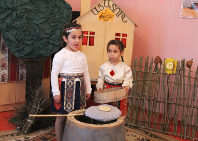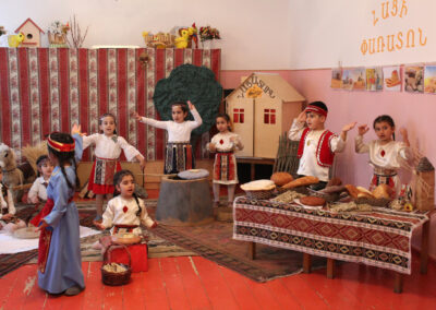 The younger children presented the stages of development of bread, by playing in practice; starting even from grain, they showed the glorious journey of bread. Kneading dough, balling it, rolling it, they finally baked it into lavash bread, in the end presenting Artsakh’s iconic symbol, the famous and delicious zhingyalov hatz.