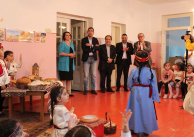 The children met the delegation with traditional salt and bread. During the tour, the delegation got acquainted with the children’s daily schedule.