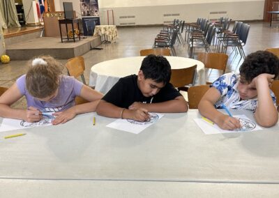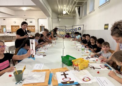 The children were denied all opportunities to get bored. They played games and created crafts that illustrated the lessons learned.