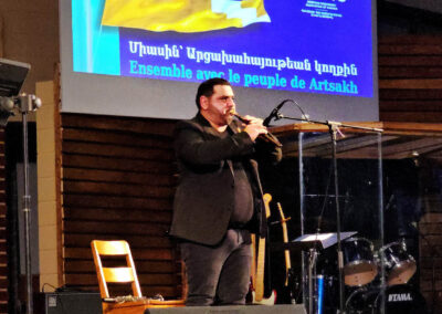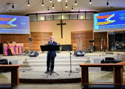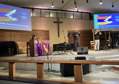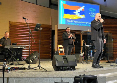 The concert organizers showed the audience a short documentary film, prepared by the AMAA/AMAC. The film gave the audience a glimpse of the horrific experiences of the Artsakhis during the 2020 war, the 10-month genocidal blockade, the atrocious bombings of civilians, the ensuing forced mass exodus and the people’s current situation in Armenia. The film also reported on the AMAA/AMAC efforts to alleviate the people’s suffering, while helping them restore their shattered lives and personal dignity.