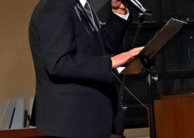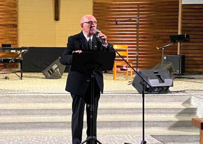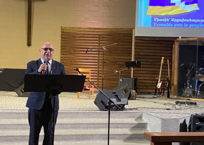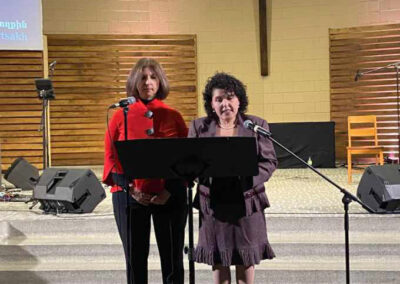 The evening started off with baritone Krikor Oskerijian’s performance of both the Canadian and Armenian National Anthems. Following him, Mrs. Salpi Nercessian and Mrs. Nania Pilibossian took the stage with their opening remarks in Armenian and French respectively. The welcome message and opening prayer were delivered by the Pastor of the host church, Rev. Georges Dabbo, reminding us to always have hope, continue praying for and lending a helping hand to our own Armenian compatriots, as mentioned in the Bible verse 1 Timothy 5:8.