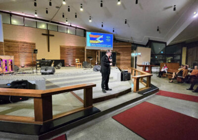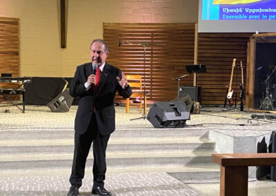 Mr. Harout Nercessian, the AMAA Representative in Canada, introduced the keynote speaker, Mr. Viktor Karapetyan. Born and raised in Artsakh, Mr. Karapetyan has served as the AMAA Representative in Artsakh for many years. In his current role as the AMAA Representative to Artsakh, he oversees the AMAA’s outreach programs, to the people of Artsakh. He shared his personal experiences of the challenges faced during the recent conflict in Artsakh. Despite these hardships, he observed a strong sense of community among the residents, attributing their resilience to their faith. Mr. Karapetyan expressed a hopeful vision that they would soon return to the cherished lands of Artsakh.
