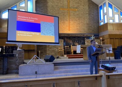 In both cities, Mr. Altoon shared a personal account of his third-generation Armenian-American heritage and took the audience on a historical pilgrimage through Armenia’s ancient spiritual landmarks. With passion and precision, he explored the soul of a people carved into stone—monasteries, chapels, and churches that have not only weathered the elements but also withstood centuries of upheaval, invasions, and migrations. These sacred structures continue to stand as enduring testaments to the Armenian Christian faith and indomitable spirit.