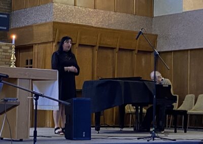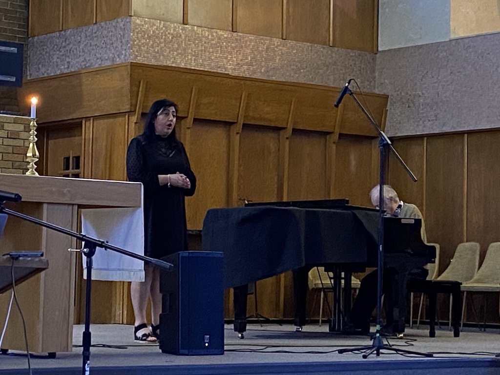 The program included two musical performances: Mr. Levon Kalemkerian sang the Armenian song «Բարի Առաքել» (“Pari Arakel”), and Mrs. Aline Buchakjian performed «Իմ Անի» (“Im Ani”), a tribute to the ancient Armenian capital Ani—once home to over a thousand churches.